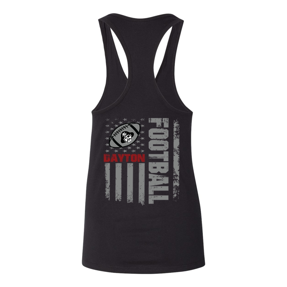 Dayton Football Racerback Tank in black and grey